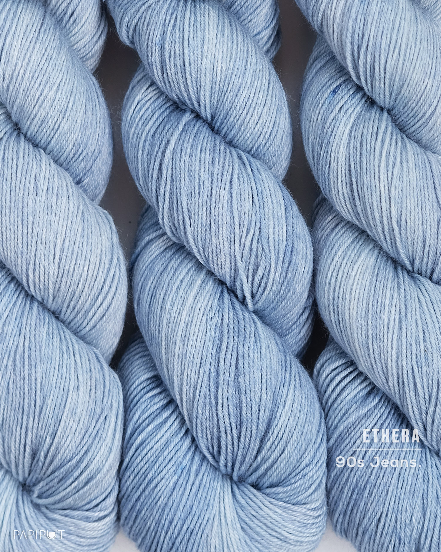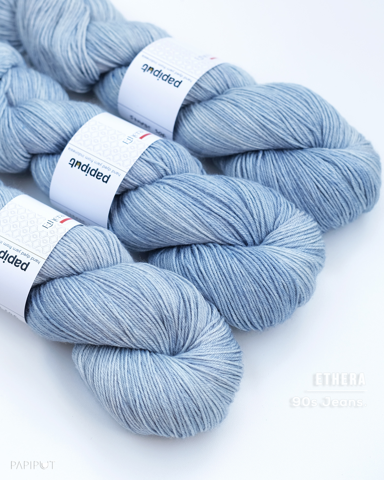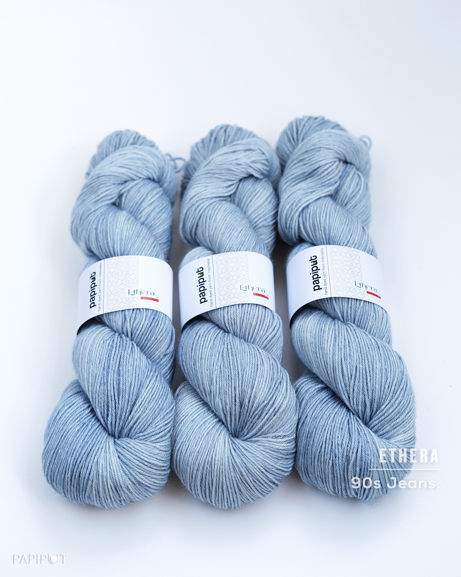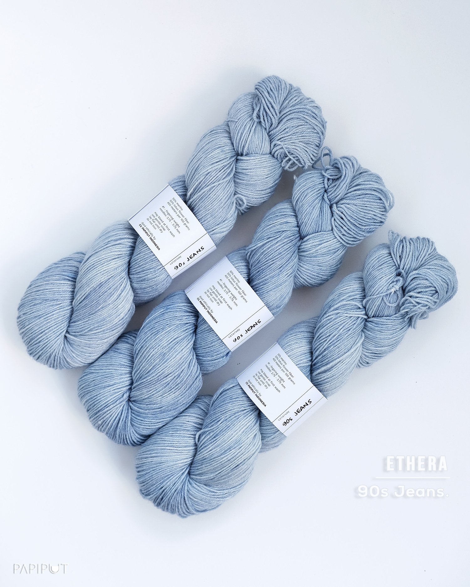 Benang ini sangat cocok untuk berbagai project iklim tropis, misalnya baju dan scarf/shawl. Gabungan serat merino dan bunga lotus menjadikan Ethera terasa lembut, lentur, halus, ringan, dan nyaman untuk dipakai bersentuhan langsung dengan kulit. Enak dirajut, stitch definition rapi, dan bagus untuk motif knitting pattern stockinette, lace, cable, colorwork, dan brioche.